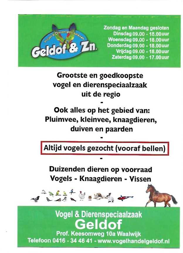 Ga hier naar de site van Vogelhandel en voeders Geldof